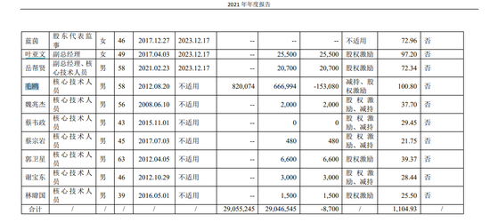 记者翻阅天奈科技2021年年报发现,OU MAO(毛鸥)2021年从公司获得的税前报酬总额为100.8万元。