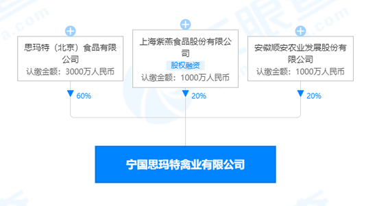 这无异于为安徽顺安提供了一笔高达5000万、长达三年的无息贷款。机会宝发现,天眼查数据显示,紫燕食品和安徽顺安控股股东安徽顺安农业发展股份有限公司共同参股了宁国思玛特禽业有限公司,二者的持股比例均为20%。而在首发反馈意见中,证监会也要求紫燕食品论证签订该合同、支付保证金的商业合理性,是否存在资金占用情况。