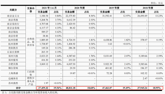 如果再加上紫燕食品对上海燕盛等其他几家关联方的销售,相关交易金额在同时段各期的收入占比更是接近20%。