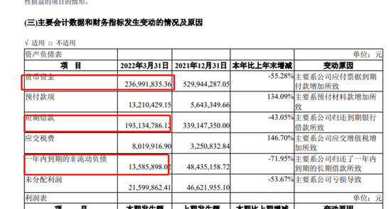 引发质疑的还有公司的经营和资金状况。近年来宝明科技业绩表现并不理想。2021年宝明科技实现营收11.15亿元,同比下降19.08%;净利润亏损3.54亿元。今年一季度宝明科技净利润亏损2502.21万元。