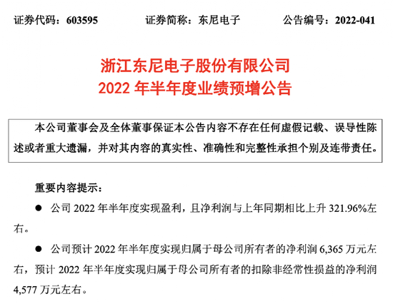 图 1:东尼电子7月5日公布的业绩预增公告