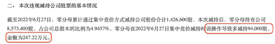 7月2日,福立旺发布公告称,其股东昆山零分母投资企业(有限合伙)(以下简称“零分母”)在2022年6月27日集中竞价减持时误操作,导致多减持94,000股,金额为247.22万元。
