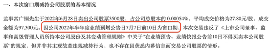 不管买卖的金额多寡,窗口期的买卖行为都构成违规。安徽广信农化监事在窗口期卖出股票,金额为9.73万元。