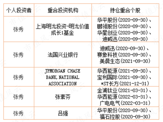 (注:根据市场公开信息整理,仅为张秀部分持仓数据)