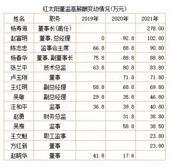 风云君分析过几千家上市公司,很少会质疑企业的董监高薪酬,但是,该上市公司董监高的薪酬变化确实令风云君看不下去:2019年以来,该公司董监高的薪酬整体都是不断上涨的,比较明显的是监事会主席陈志忠,2019至2021年分别为66.8万元、88.8万元、90.8万元。