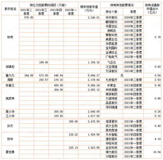 统计了红太阳的部分个人股东自2020年以来的持股情况,发现这些个人股东中持仓流通市值少则有两三千万、多则超过十亿元,算是比较有实力的一批牛散。见下表: