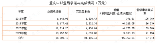 2020年,重庆中邦业绩好了很多,盈利4439万元,翻了一倍,但还是不到承诺数的4成。