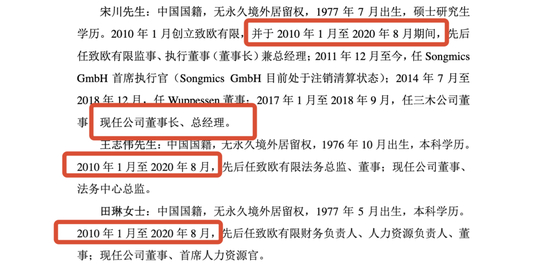 从上述任职履历可以发现,致欧家居实际控制人宋川、董事王志伟、董事田琳三人任职履历均从2010年1月开始,而作为实际控制人,董事2010年1月前竟是空白。而同样作为公司董事的赵东平任职履历较为详细。