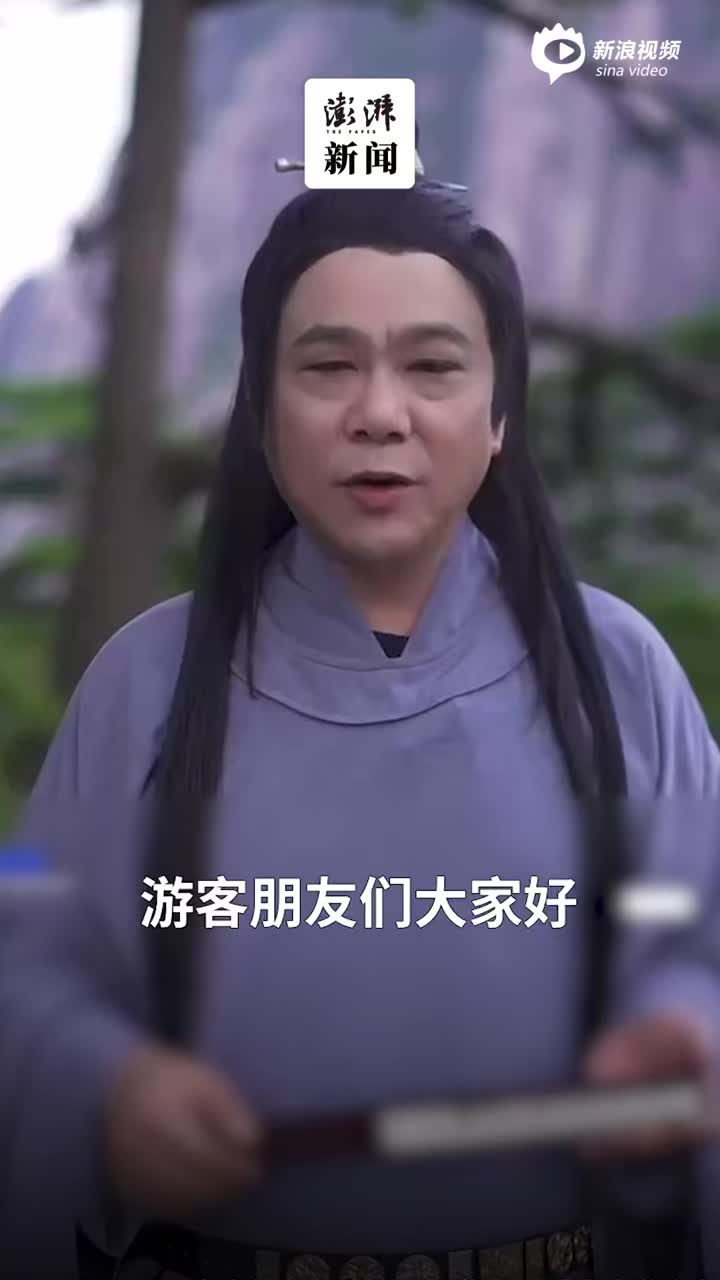 视频:迎客松前长发执扇,黄山旅游董事长古装“揽客”