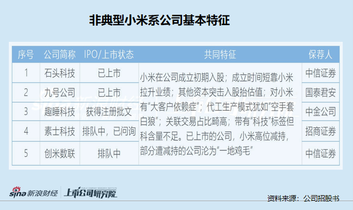 招股书显示,趣睡科技将自己定位成“小米集团的非典型生态链企业”。目前,在A股小米系公司中,素士科技、创米数联、石头科技、九号公司存在与趣睡科技相同的特征,我们可以统称这5家公司为“非典型小米系公司”。