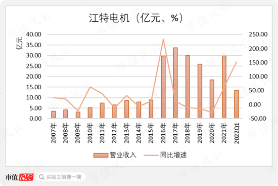在此之前,江特电机的利润规模一直都游荡在千万元规模,且刚刚在2016年、2017年破亿创新高。