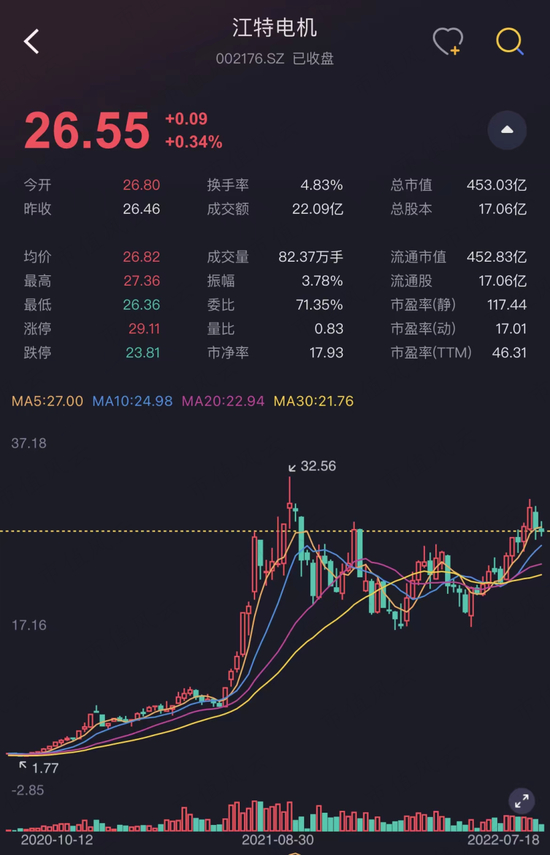 这不巧了嘛,风云君前段时间刚好关注过江特电机,起因也是其二级的股价。
