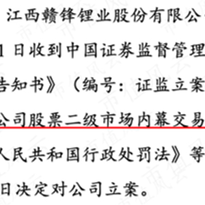 近日,赣锋锂业(002460.SZ)因涉嫌二级市场内幕交易被立案调查。