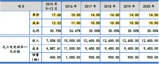 以2015年9-12月为例,九龙汽车新能源销售车型,主要为E6,售价为40.5万元/辆(含补贴),补贴为30万元/辆。