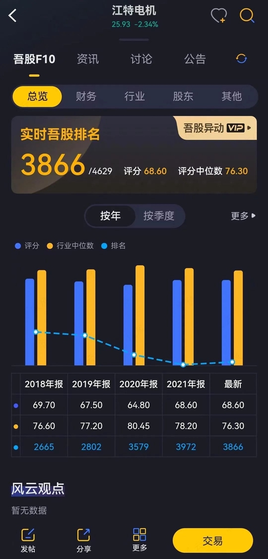 但点开吾股F10,又会发现,江特电机的排名,一直在2000名开外,且每况愈下,最新排名为3866。