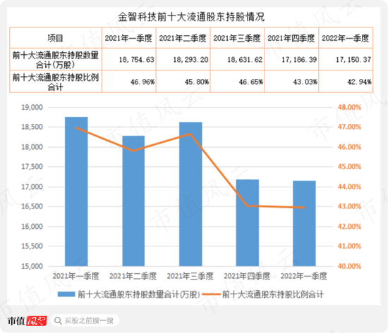 2021年前十大流通股股东持仓数相对稳定,在2022年一季度较去年四季度变化不大。