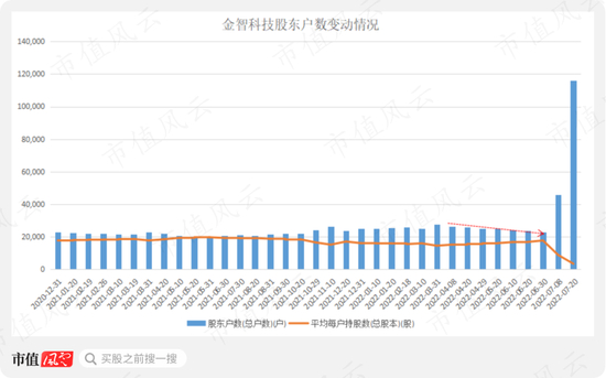 伴随股价的大涨,金智科技的股东户数出现大幅增加。7月8日飙增至4.5万户,不到10天时间,股东户数翻了一倍,随后,7月20日,股东户数更是激增至11.6万户,较7月8日再次增长150%。