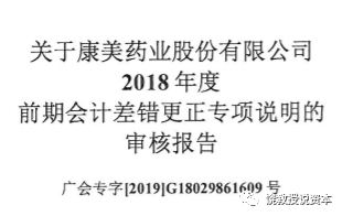 自爆的形式是说,之前会计记账做错了,现在要调回来,并由审计师正中珠江出具了一个前期会计差错更正的报告。