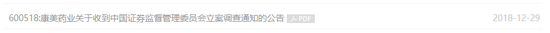 紧接着,2个月后,2018年12月18日,证监会宣布对康美立案调查。