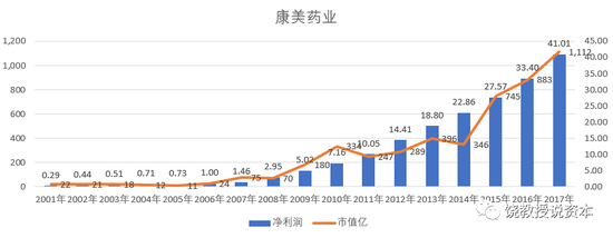 好业绩,市场自然买账,2001年康美刚上市市值只有22亿,2008年增长到70亿,2017年涨过千亿,10年涨了16倍。