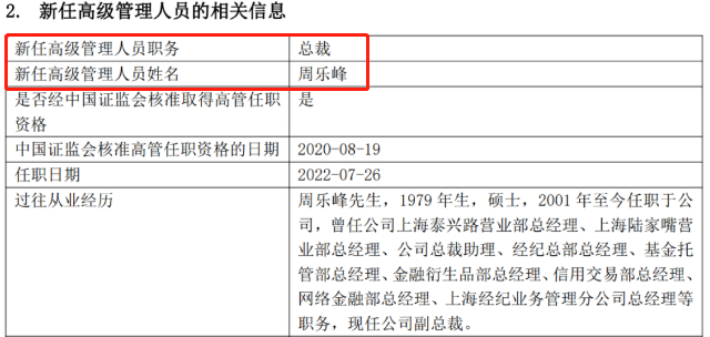 据了解,不同于其他券商从监管空降高管等情况,生于1979年的周乐峰,属于从基层员工一路逆袭而上的高管,做过营业部员工、营业部总经理,2020年升任副总裁,直至此次担任总裁职位。