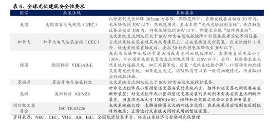 因此,美国、欧洲、澳洲等国家及地区对光伏建筑发布强制性安全规范,简单来讲,将电压控制在80V以下,实现组件级关断,以保证安全性。
