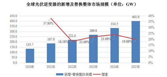 根据 IHS Markit 预测,至2025年全球光伏逆变器新增及替换整体市场将有望达到400GW的市场。