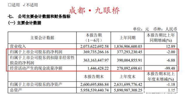 不过,细看中报业绩情况,水井坊第二季度实现净利润仅为600余万元,而同期营业收入却高达6.6亿元。