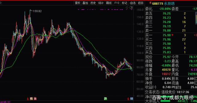 7月27日开盘,截至到正能量君发稿时,水井坊已经下跌超过4个百分点,股价在76元/股左右,159元/股高位站岗的投资者你们辛苦了。