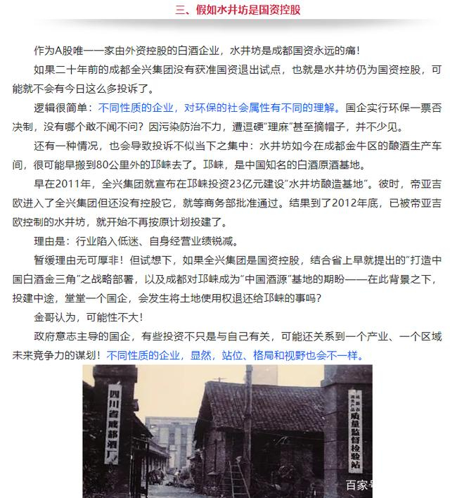 是啊,水井坊如果至今仍属成都国资的话,全兴酒业可能后来也不会被来自上海的光明食品掌控了。