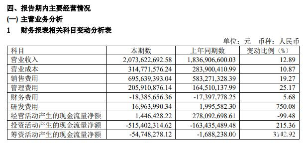 销售费用6.96亿元,去年同期为5.83亿元,同比增加19.27%;应付职工薪酬1.57亿元,去年同期为7490万元,同比增长110.25%――主要系业务扩张增加的人员导致应付职工薪酬余额增加。