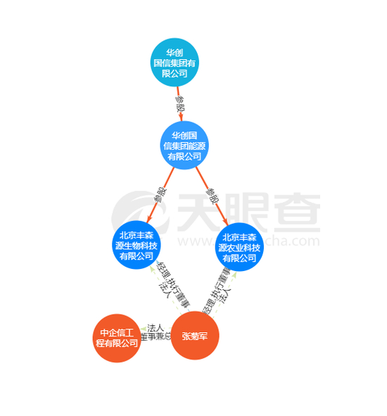 王光辉所指定的另一家收款公司华创国信也与张菊军之间有直接关系,天眼查显示,张菊军与华创国信同为北京丰森源生物科技有限公司(以下简称“北京丰森源”)。