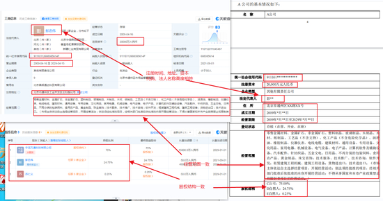 而财联社记者从工商注册资料发现,鼎鑫荣胜与先河环保披露的清利新能源神秘借款方“A公司”或有直接关联。鼎鑫荣胜的子公司北京华信辉创国际贸易有限公司(以下简称“华信辉创”)与“A公司”工商注册信息完全一致。