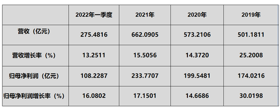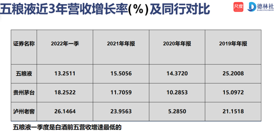 从2020年和2021年来看,五粮液的营收增速也就是在15%左右,2019年增长了25%,2020年增长了14.37%,2021年是15.5%,2022年一季度只有13.25%。