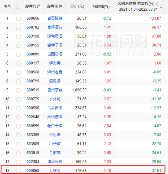 从2022年以来,五粮液跌幅超过18%,茅台跌了6.8%。