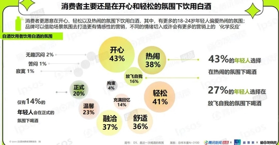 大家到底什么时候喝酒呢?数据显示,开心的时候概率为43%,热闹的时候概率为38%,无趣郁闷的时候只有2%。