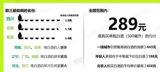 我们来看一下这些问题的答案,第一个,四川人最能喝,人均5.8两,半斤水平;云南人排第二,5.7两,也是接近半斤;安徽人排第三,5.6两。