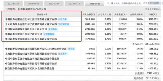 在此期间,股价成交量与换手率急剧上升,7月1日换手率曾高达41%,大量筹码被交换、对倒,推动股价继续飙升。游资“群狼”嗅到了金钱的芬芳,市场多家活跃游资,如实力雄厚的宁波解放南,年轻游资炒股养家、涅槃重升等齐聚宝馨科技。