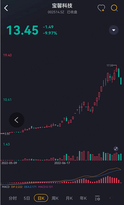 宝馨科技(002514.SZ)就是其中一只“妖王”。就像市值风云常山说得那样:一切没有基本面支撑的上涨,都是割韭菜:7月25-26日,宝馨科技终于向韭菜们举起血腥的镰刀,连续两个放量跌停,把小散们套牢在高位。