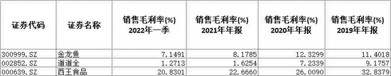 盈利能力方面,在2020年之前,金龙鱼的毛利率保持着双位数,但从2021年开始,变为了个位数。今年一季度,金龙鱼毛利率为7.15%,低于西王食品,高于道道全。今年二季度,金龙鱼毛利率为7.53%,同行公司暂未披露相关数据。