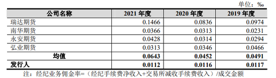 值得一提的是,2019年~2021年新湖期货经纪业务佣金率分别为0.0117‰、0.0116‰和0.0112‰,低于同行业可比公司平均值。