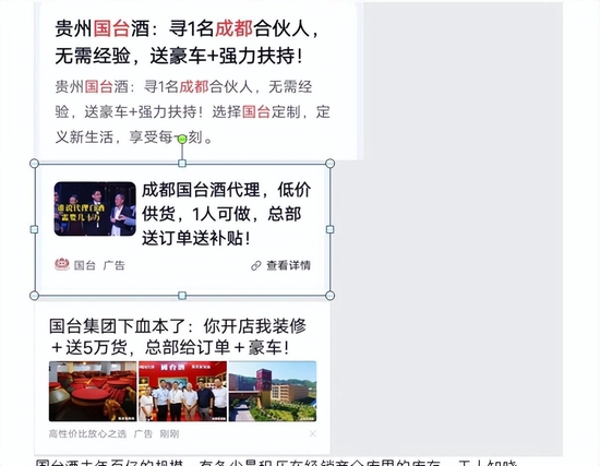 “国台目前市场上严重供大于求,社会库存非常大,大家都在抛货,造成新商高位接盘。”一位经销商坦言。另一位经销商则反映:“新签约经销商拿到货后,由于产品卖不出去,便开始持续低价抛货后开始撤出。等一批经销商退出后,国台会再以同样的方式不断招新的经销商。”