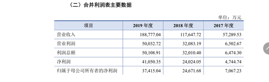 招股书显示,2017-2019年,国台酒业分别实现营收5.73亿元、11.77亿元、18.88亿,净利润分别为0.47亿、2.4亿元及4.1亿元。粗略计算,国台酒业这三年内累计完成营收超36亿元,净利润增速接近或超过100%。尤其是2018年,国台酒业的营收与净利润更是暴涨,分别增加105%、410%。