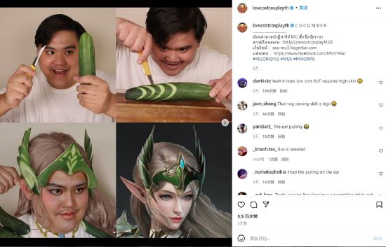 其中,在泰国社交平台上,COS达人Lowcostcosplayth最受瞩目。他的Facebook推文5天获得3.9万赞,取得良好的破圈效果。
