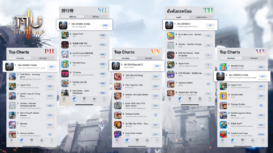 《全民奇迹2》东南亚各国App Store榜单表现