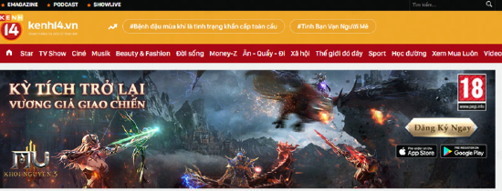 越南高流量新闻媒体Kenh首页Banner