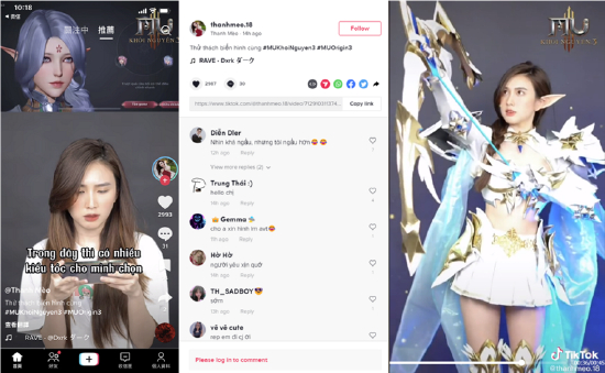 相较于泰国用户对内容向传播的偏爱,越南用户更注重“名人效应”。《全民奇迹2》邀请了越南多位知名KOL进行长线宣传,并联动当地具有影响力的Tiktoker开展COS短视频合作,如当地模特Thanh Meo、Trang Trn等都为游戏拍摄了多部创意影片,获得极高人气互动。