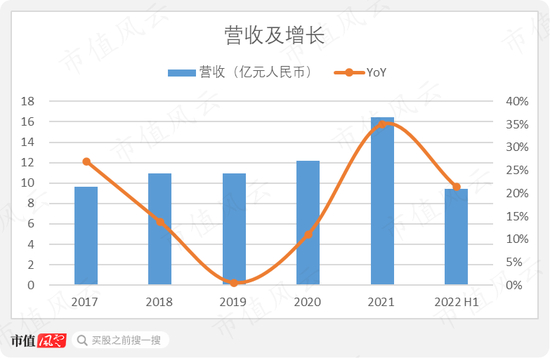 随着IPO募投项目在2021年达产,公司营业收入在2021年上升35%,达16.5亿元人民币。