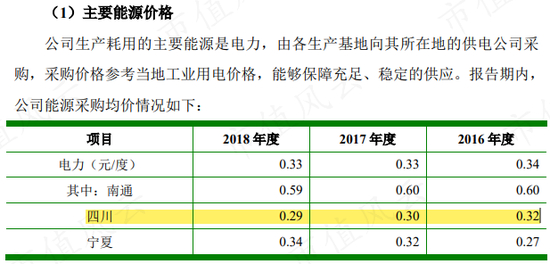 公司将能耗最高的环节放至雅安和石嘴山,效果显著:在2016~2018年间,公司的平均单位电力成本仅为0.33~0.34元/度。