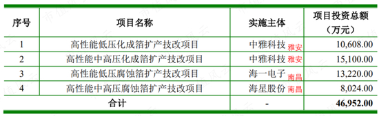 预计新增中高压化成箔产能920万平方米,低压化成箔产能650万平方米,项目建设期约为24个月。